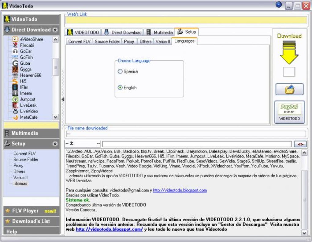 O VideoTodo trabalha com mais de 50 sites especializados de vídeo online. Não faltam os clássicos como YouTube, Metacafe, MySpace, Veoh, Vimeo e VideoGoogle. Com tanta variedade, é difícil você não achar o vídeo que está procurando.
